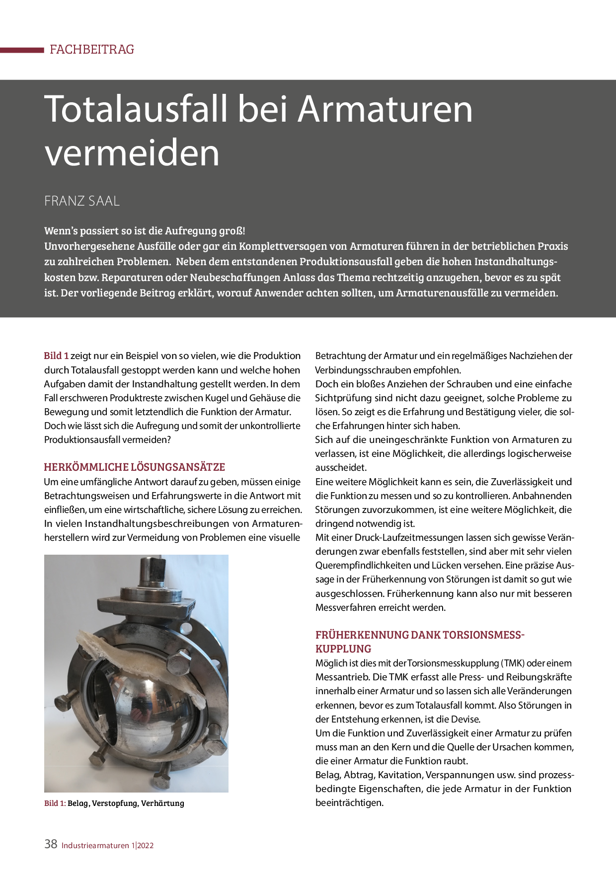 Wenn’s passiert so ist die Aufregung groß! Unvorhergesehene Ausfälle oder gar ein Komplettversagen von Armaturen führen in der betrieblichen Praxis zu zahlreichen Problemen. Neben dem entstandenen Produktionsausfall geben die hohen Instandhaltungskosten bzw. Reparaturen oder Neubeschaffungen Anlass das Thema rechtzeitig anzugehen, bevor es zu spät ist. Der vorliegende Beitrag erklärt, worauf Anwender achten sollten, um Armaturenausfälle zu vermeiden.